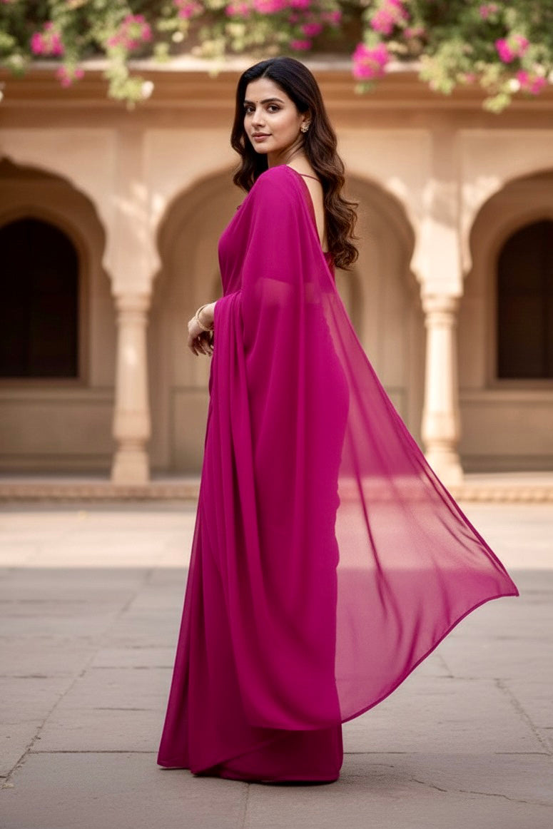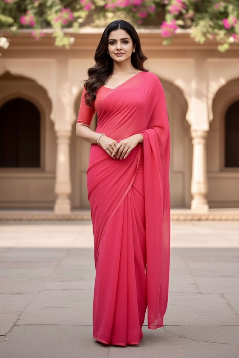 Discover the magic with our Handloomed luxurious 100% Mulberry Silk Platinum Chiffon Sarees. Each saree is meticulously hand dyed, creating fluid drapes and vibrant hues that celebrate the essence of Indian craftsmanship. Perfect for DIY enthusiasts and design lovers, these sarees offer a versatile canvas for your imagination — embellish them with laces, hand embroidery, sequins, or Zari borders to create your signature look. Flaunt it as an effortlessly elegant drape or personalize it into a statement masterpiece. Every piece tells a story of heritage, creativity, and self-expression.